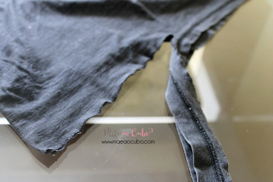Como eu adorei essa ideia de cortar, cortei também a parte de baixo da camisa e fiz franjas, eita que tô curtindo demais essa ideia de customizar camisas. Só vou precisar de uma tesoura melhor, pois essa de papel não rolou muito não, mas deu pra quebrar o galho. Pronto!
